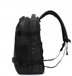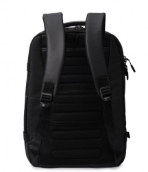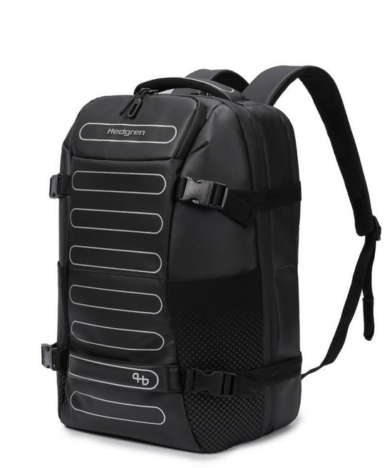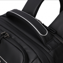 Вмісткий рюкзак підійде як і для щоденного використання, так і для подорожей. Зовнішня та внутрішня тканини виготовлені з 100% перероблених та сертифікованих матеріалів RPET (перероблені пластикові пляшки) зовнішня тканина: поліестер 600D RPET, внутрішня підкладка: поліестер RPET 150D. Має два основних відділення, одне з яких зі стримуючими кутами де розташована додаткова кишеня з RFID-захистом, відділ для смартфону та документів формату А4. Другий відділ для ноутбуку 15.6", на блискавці якого передбачена можливість розмістити навісний замок. Передня сторона оснащена кишенею для речей першої необхідності і світловідбиваючі елементи. На задній частині рюкзака розміщена кишеня для дощовика, планка для розміщення виробу на телескопічну ручку валізи і невелика стрічка-петля, що дозволяє легко зачепити продукти на невелику вішалкуне деформуючи та не пошкоджуючи ручки виробу. Також, має бокові кишені для пляшки та парасольки.