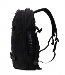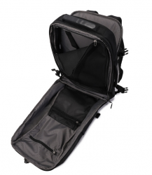 Вмісткий рюкзак-ручна поклажа, ідеальний вибір для подорожей. Має два основних відділення, одне з яких оснащене сіточним відділом для одягу та дрібниць, є кишеня з RFID-захистом, відділ для смартфону та документів формату А4, додатково має функцію розширення для збільшення обсягу. Другий відділ для ноутбуку 15.6", на блискавці якого передбачена можливість розмістити навісний замок. Передня сторона оснащена кишенею для речей першої необхідності. На задній частині рюкзака розміщена кишеня для дощовика та планка для розміщення виробу на телескопічну ручку валізи. Також, має бокові кишені для пляшки та парасольки.